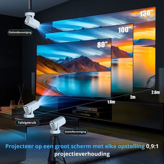 Schermgrootte: 80 tot 130 inch