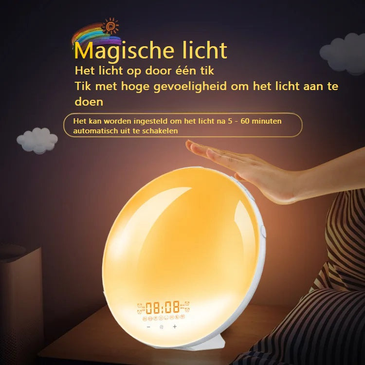 Start je dag met stijl en geluid met de wake up light. Dit slimme lichtsysteem, simuleert een zonsopgang met aanpasbare lichtkleuren en wordt vergezeld door je favoriete radiostation. Beheer eenvoudig de instellingen via je smartphone en word elke ochtend gewekt met de perfecte combinatie van helder licht en vertrouwde radiomelodieën voor een energieke en muzikale start van de dag.